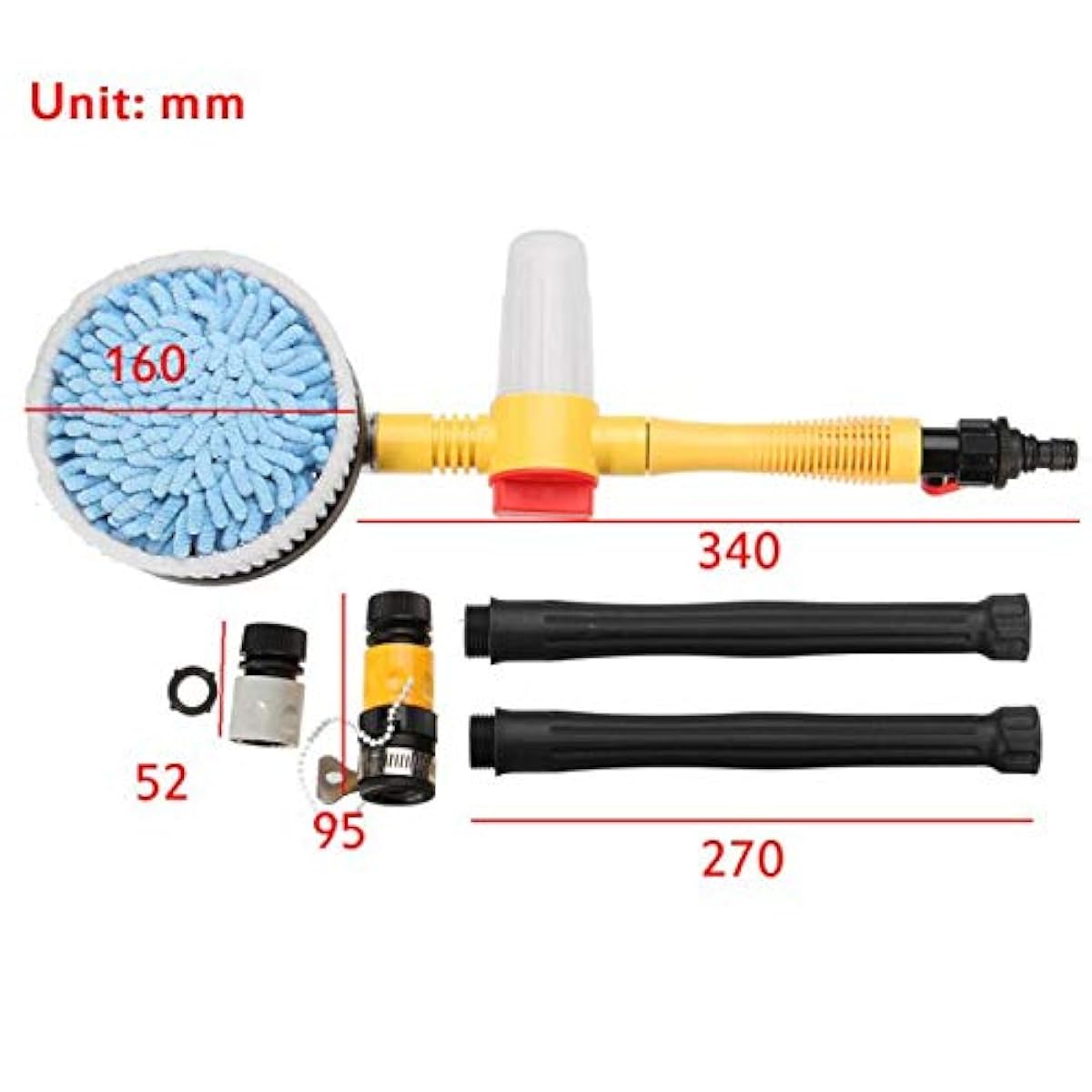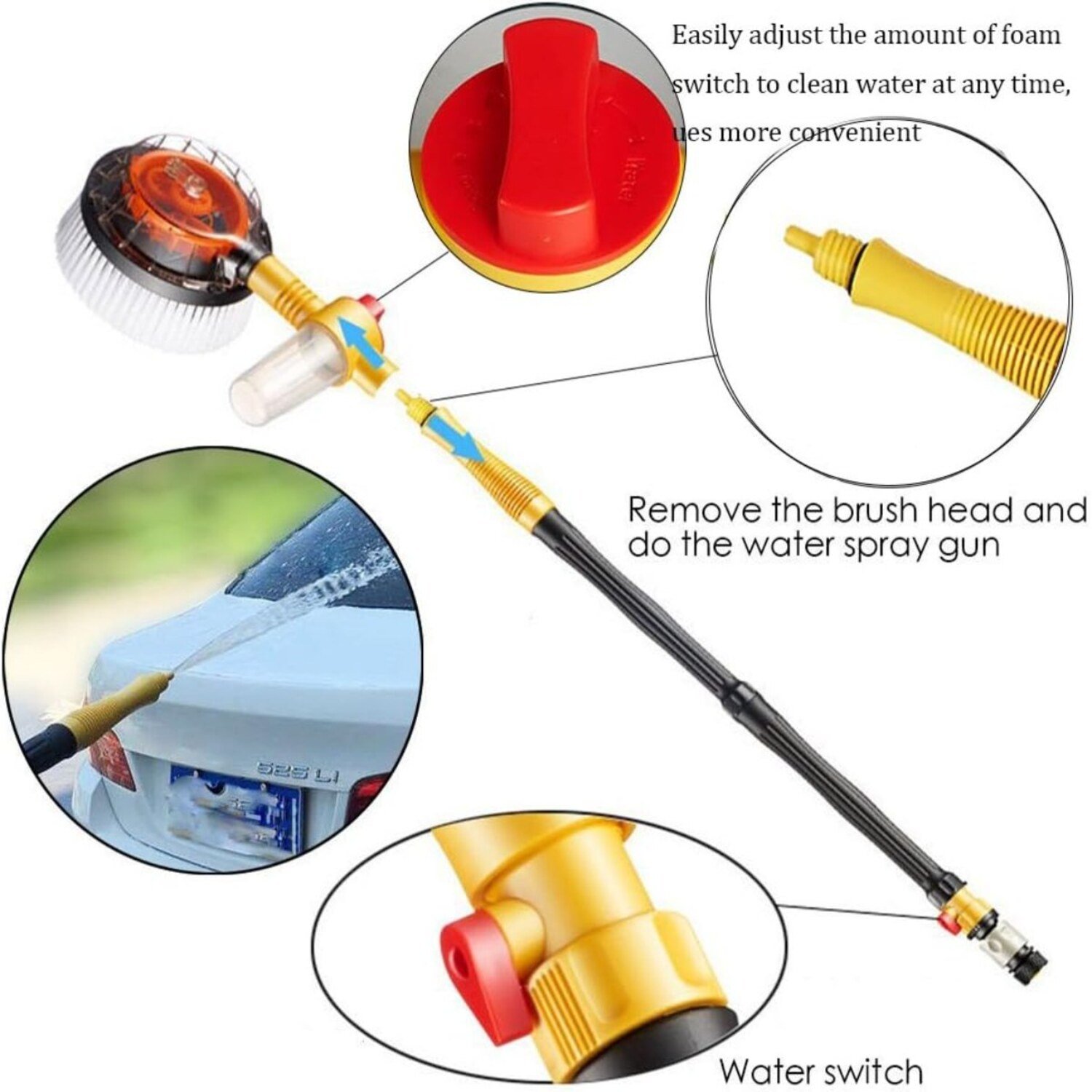 The mop / brush often comes with several detachable or extendable poles, so you can reach the roof, windows, wheels, etc., without straining.