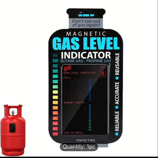 The magnetic gas level indicator sticks right onto your gas cylinder and shows you how much gas is left with no shaking no guessing and no unexpected kitchen problems. Just a quick glance lets you know when it is time for a refill. Easy to use reusable and super handy for everyone.