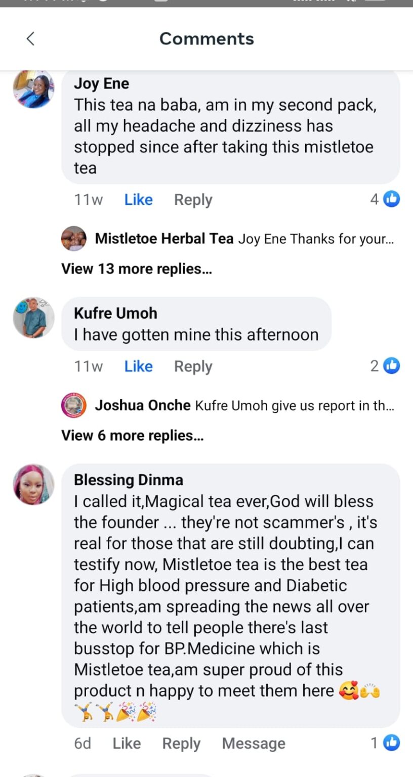 “I bought this tea mainly because of my diabetes. To my amazement, my sugar levels are now more stable than ever. Unlike the medications that always left me with side effects, Mistletoe Tea feels natural and gentle. I’m sticking with it for life.”